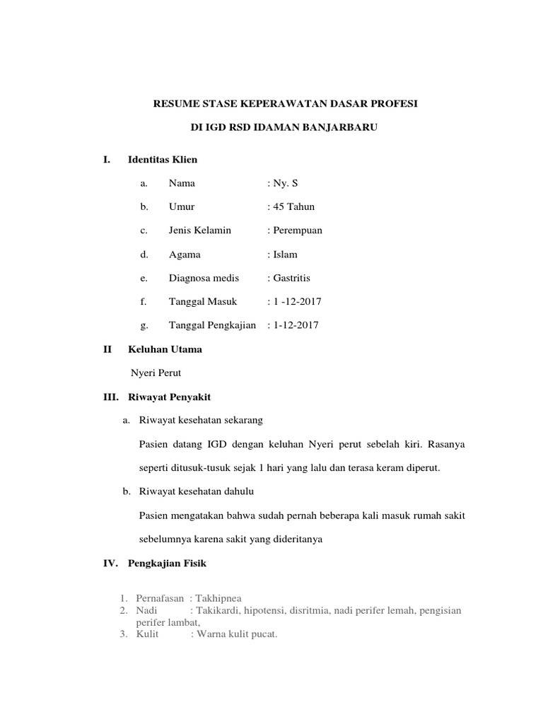 Format Resume Asuhan Keperawatan Pdf